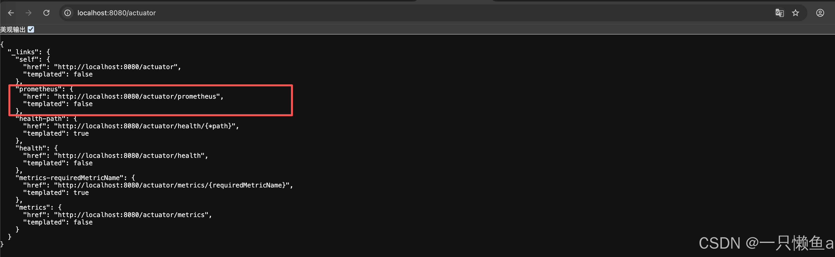 访问 http://localhost:8080/actuator,会新增prometheus端点