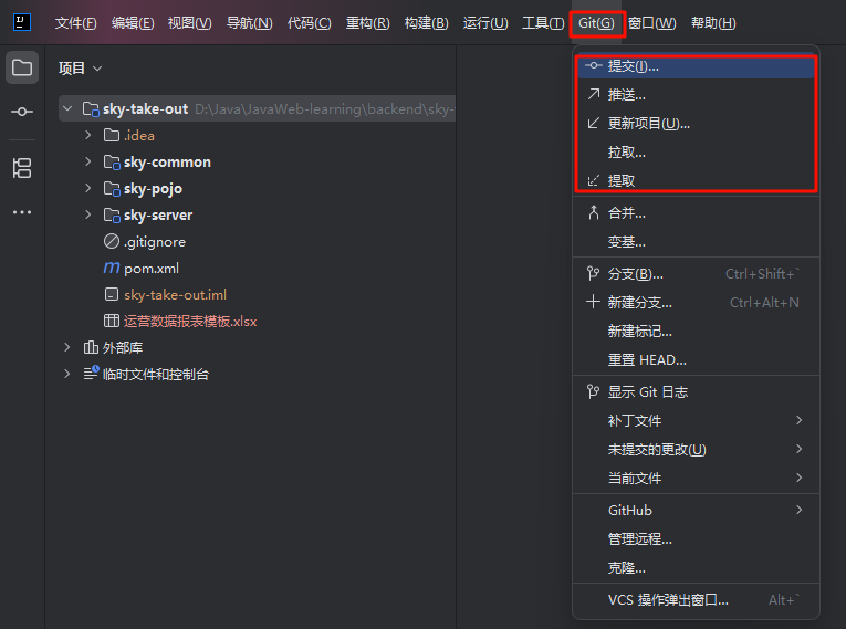 VCS->创建git仓库->选择文件夹(项目根目录)