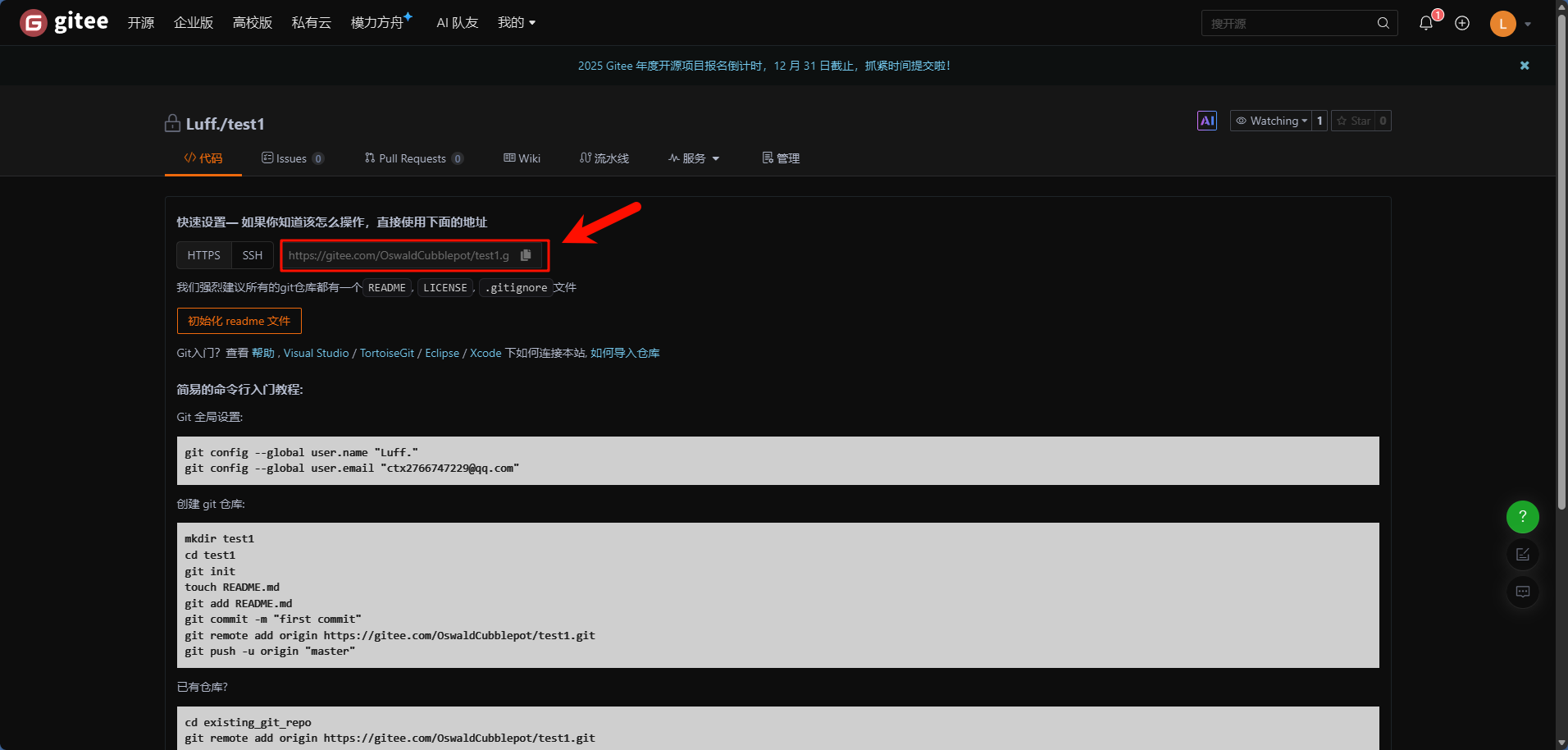 完成后回到gitee页面,刷新一下,如果显示出文件内容,则已成功