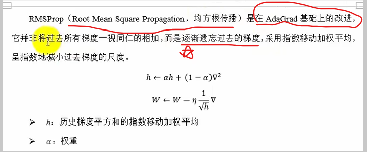 # 更新方法 h=decay*h+(1-decay)grads^2 w=w-lr*(1/√h ̄)*grads