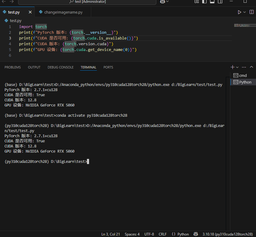 我这里直接3.10版本创建(py310cuda128torch28是我起的环境名称,但其实torch装了2.7版本)
