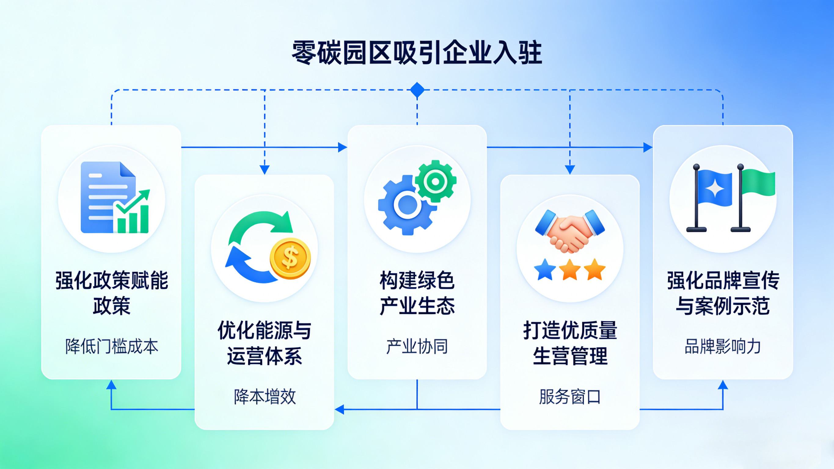 零碳园区吸引企业入驻,核心是要实现"零碳效益"与"企业利益"的精准对接。只有从政策、成本、产业、服务等多维度发力,将零碳优势转化为企业的发展优势,才能让零碳园区真正成为企业集聚的"洼地"、产业升级的"高地",最终实现园区与企业的共生共荣、绿色发展。