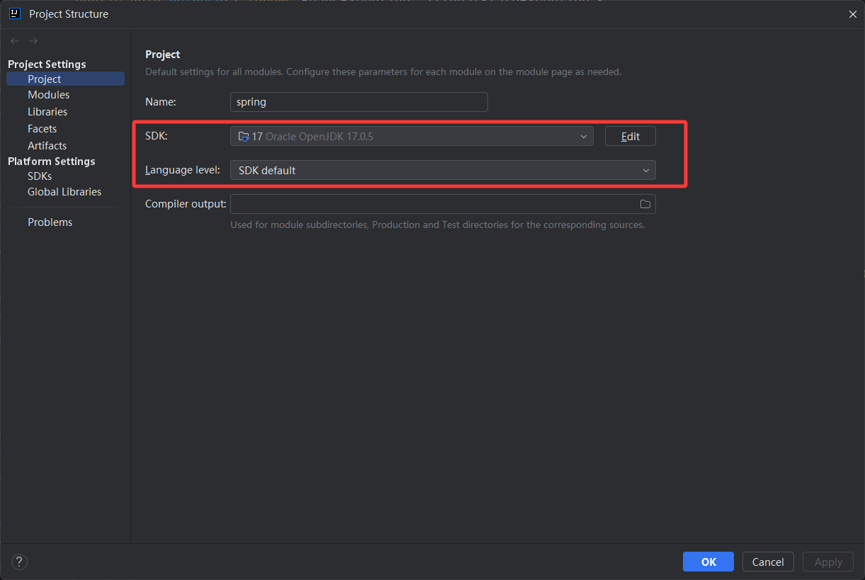 最后,要设置项目SDK:光标放在【File】上-->【Project Structure】,选择JDK 17