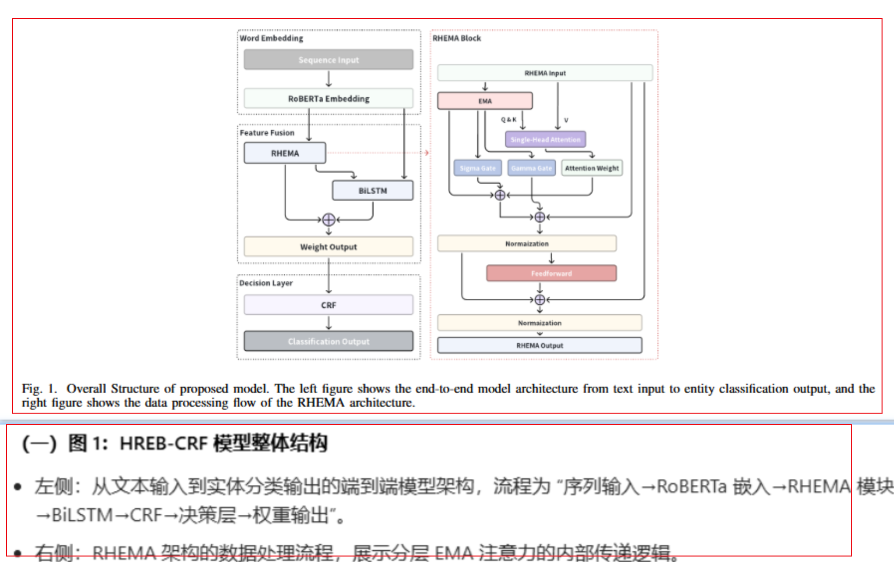 - 能识别出这是一个包含 RoBERTa、BiLSTM、CRF 等模块的实体识别模型,但对所有模块、子模块以及细节说明的覆盖不完整。