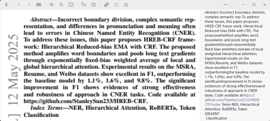 下面我编写了一个简易的代码用于调用,这里我数据准备对象是一篇NER领域的论文,下面是进行代码拆解