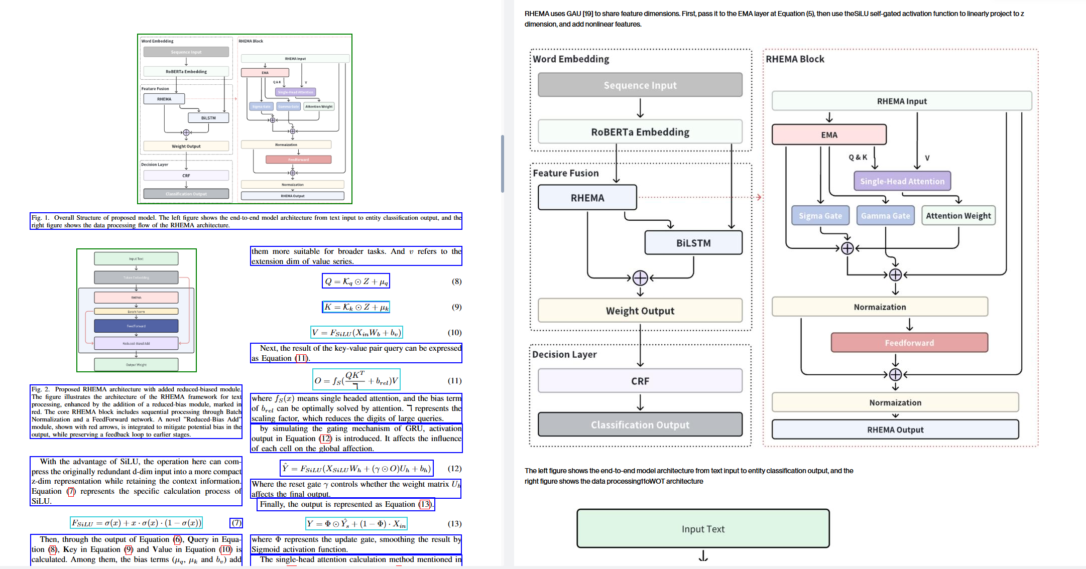 对于模型结构图、流程图这类图+字混合区域,EasyLink 不再只做简单 OCR,而是: