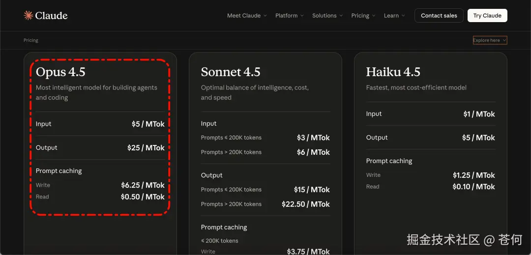 再看看最关心的价格,这是 Claude 的: