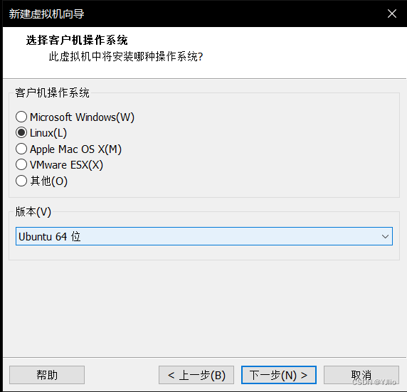1)新建虚拟机:选择 Linux + Ubuntu64