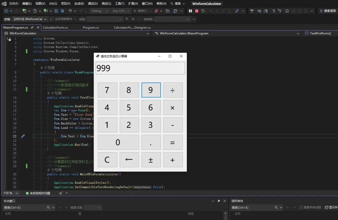下面是还未迁移到 Blazor WASM 平台的 WinForm 计算器项目演示效果: