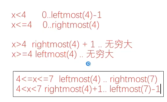 能找到就是返回最左侧的值;找不到就返回比目标大的第一个索引位置。