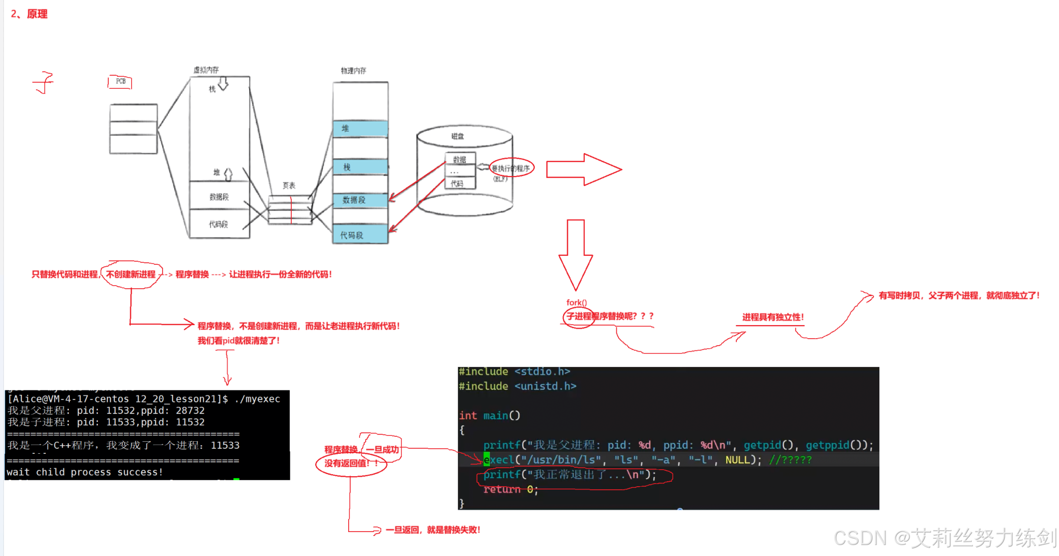 程序替换是通过特定的接口,加载磁盘上的一个全新的程序(代码和数据),加载到调用进程的地址空间中!