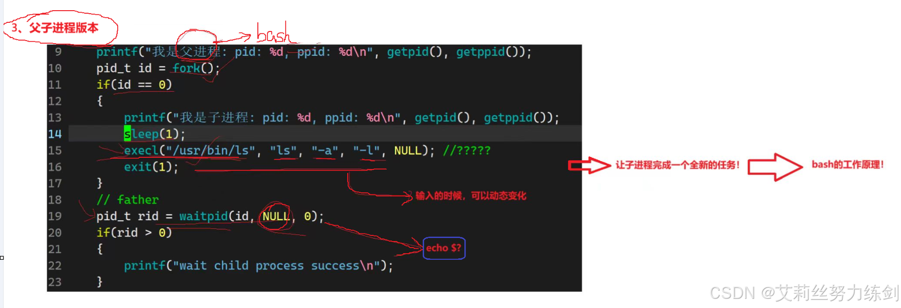 fork()配合使用: 常见模式是先fork()创建子进程,再在子进程中调用 exec 执行新程序。