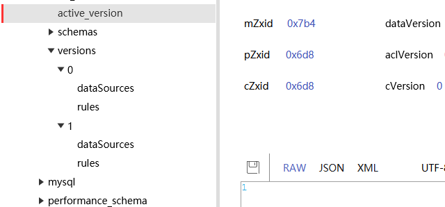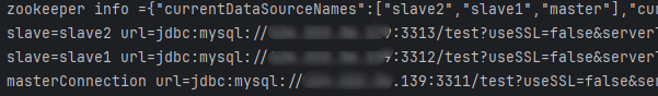 可以看到,zookeeper中versions下新增一个版本号为1的配置,在里面填写修改后配置,然后将active_version修改为1,后续项目中数据源也刷新了。主库变为3312,从库变为了3313.
