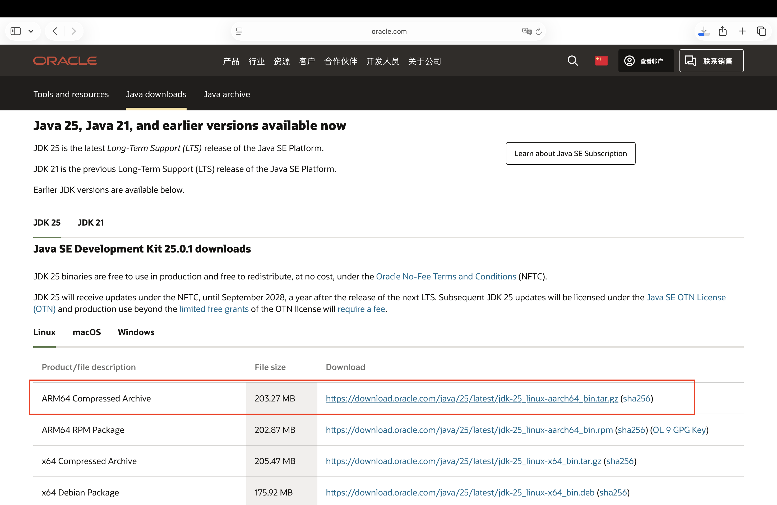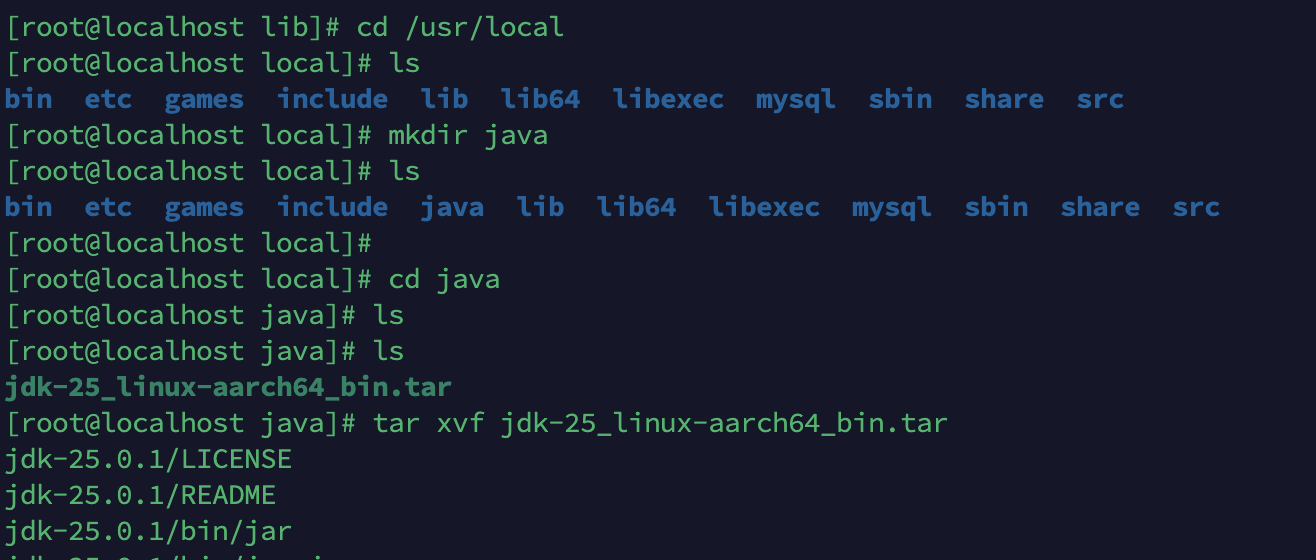 本机为M芯片,下载的安装包为jdk-25_linux-aarch64_bin.tar