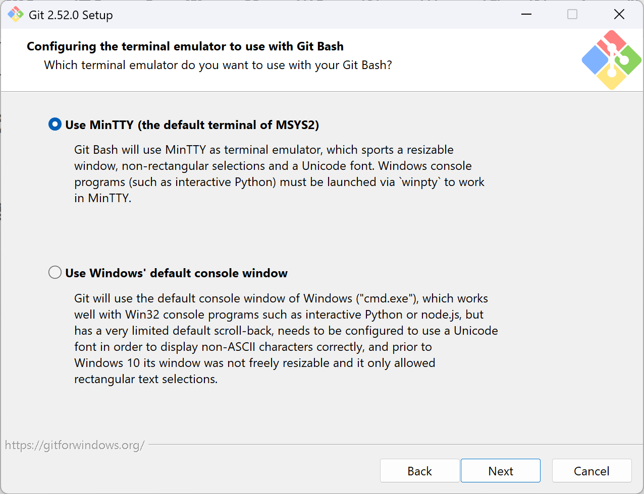 配置 Git Bash 使用的终端模拟器(Configuring the terminal emulator to use with Git IBash)