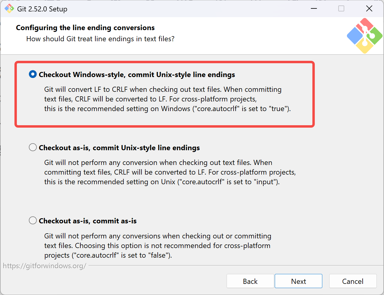 选项 1:Checkout Windows-style, commit Unix-style line endings