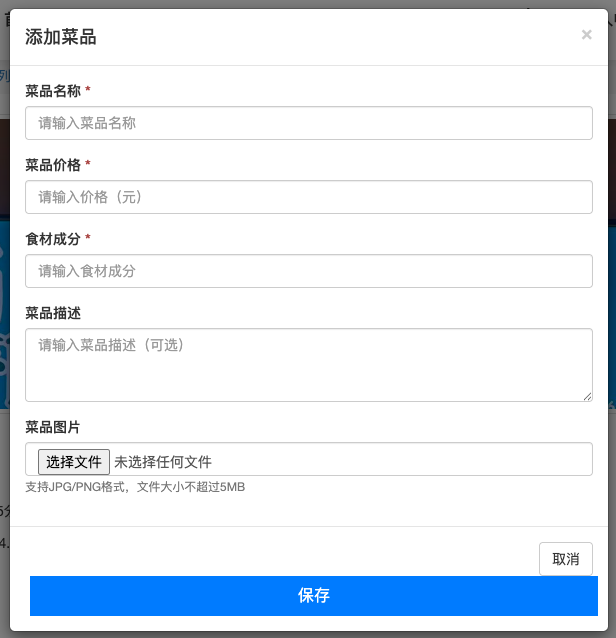 - 用户在添加/编辑菜品时,可以上传菜品图片