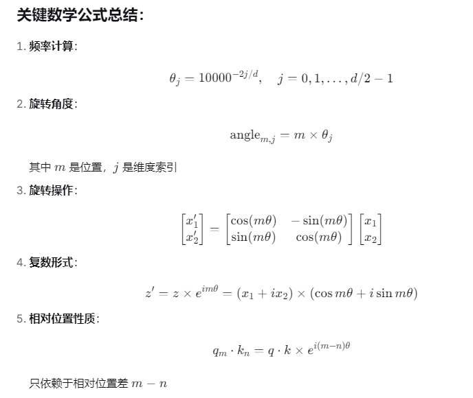 RoPE就是把每个词向量想象成很多小指针,然后根据词的位置旋转这些指针。当计算两个词的相关性时,旋转的角度差自动包含了它们的位置距离信息。