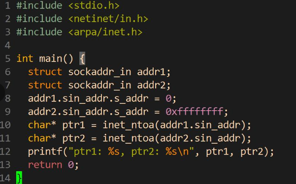 inet_ntoa 这个函数返回了一个 char*, 很显然是这个函数自己在内部为我们申请了一块