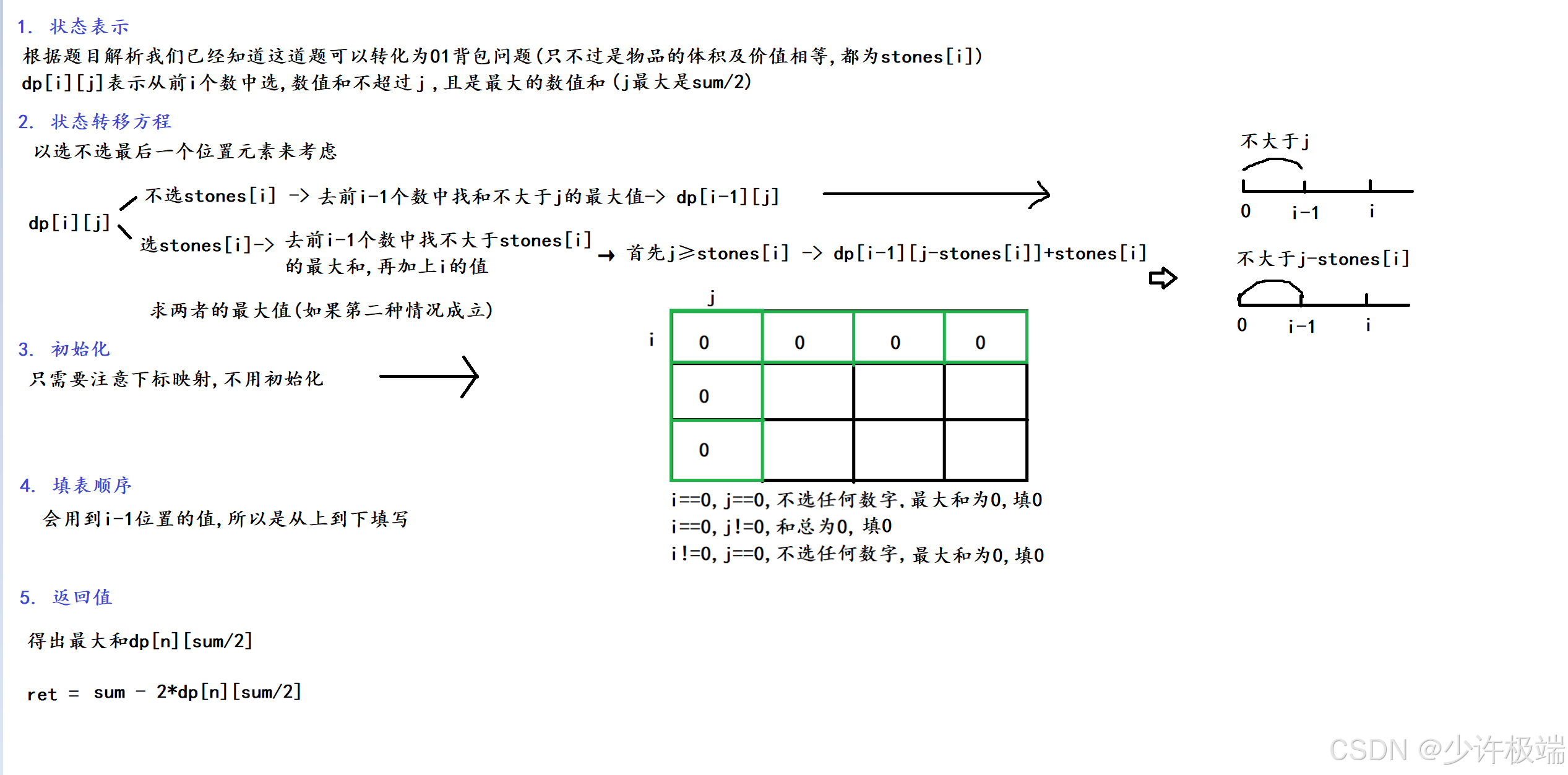 dp[j] = Math.max(dp[j], dp[j - stones[i - 1]] + stones[i - 1]);
