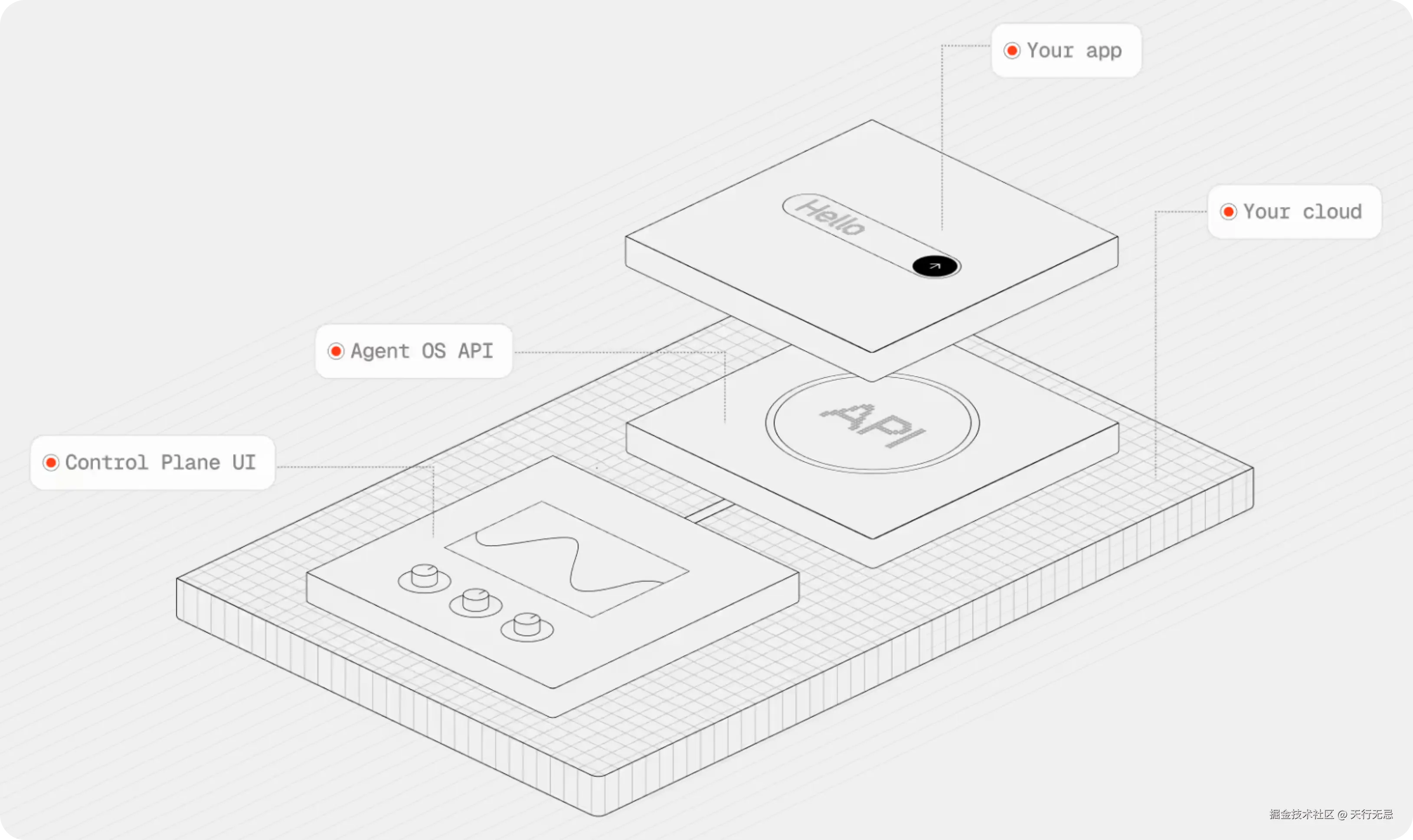 - AgentOS 控制平面:通过全栈运行可视化管理跨环境部署的 AgentOS 系统,支持测试、监控与运维管理。可自主构建 Web 界面或直接使用 AgentOS 原生管理界面。