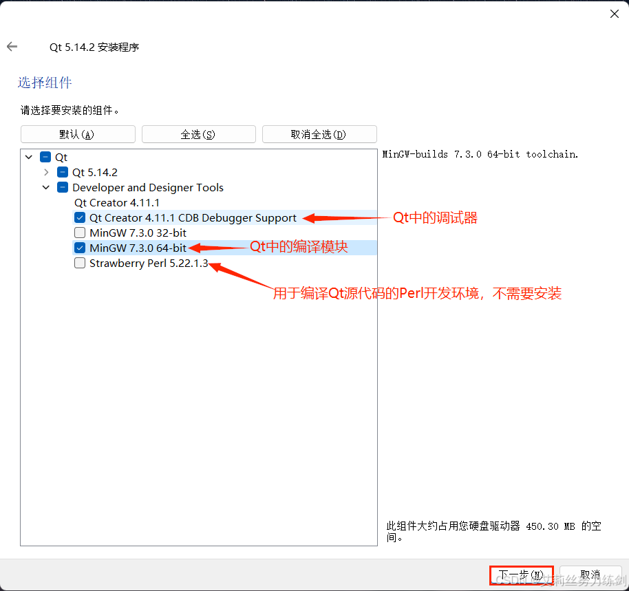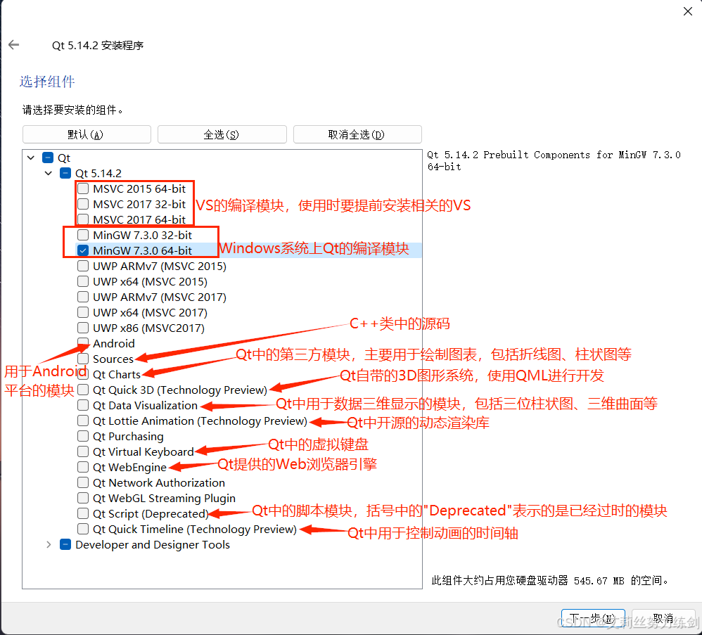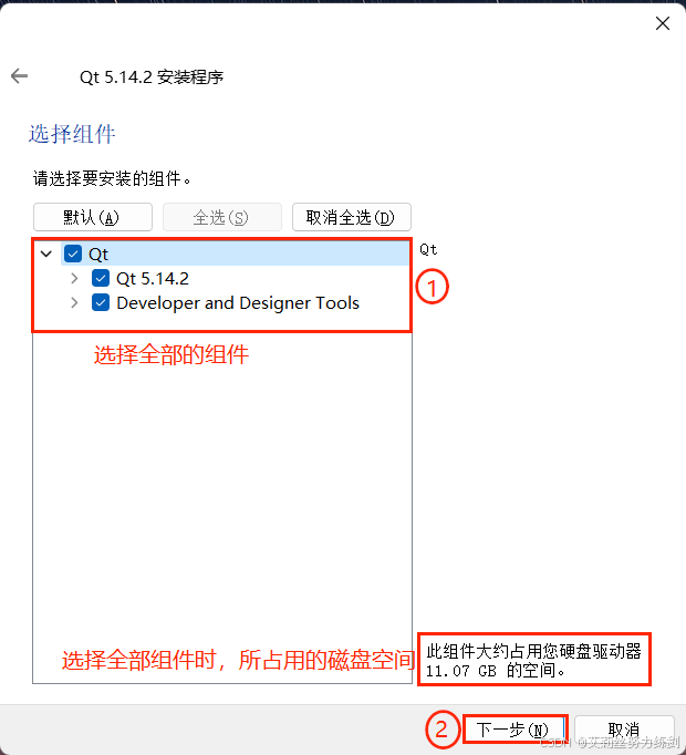 Qt Creator。如果电脑磁盘空间允许,建议全选以便后续使用。