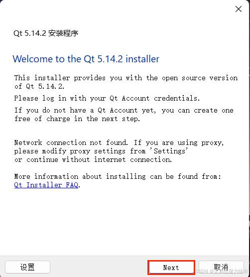 注意:在双击之前先断网,否则需要我们注册Qt账号登录后才能进入下一步安装!