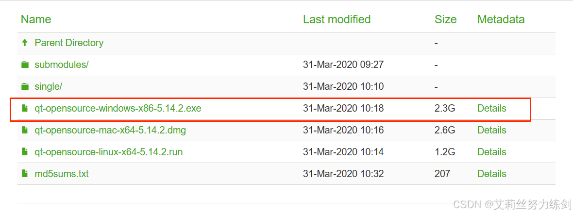 2、选择需要下载的版本(本文以5.14版本为例,所选具体版本为:5.14.2):