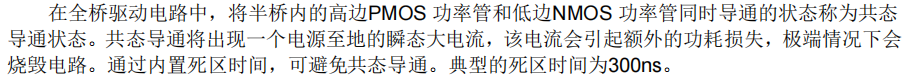 - 内置死区时间 典型 300ns,有效防止上下管直通(共态导通)