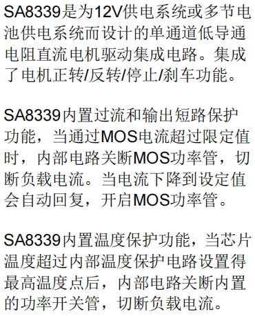 本文基于 SA8339 芯片数据手册 Version 1.1 整理编写,结合直流电机驱动设计实践