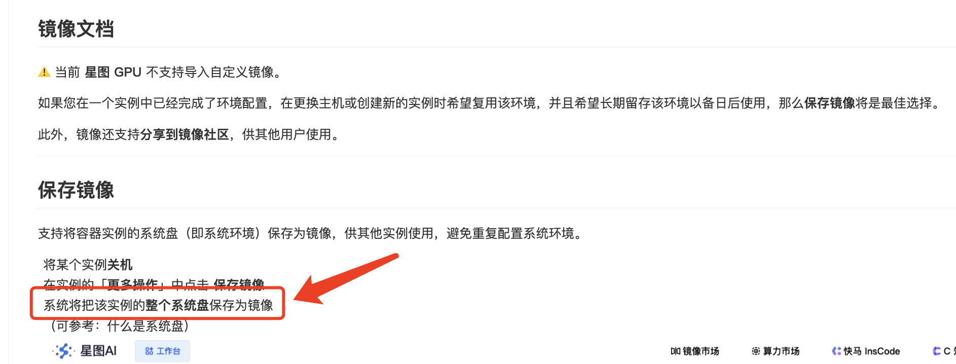 但最后保存镜像的时候记得模型服务启动所需的一切代码、模型权重文件等都要放到系统盘!(更多详情请移步帮助文档)