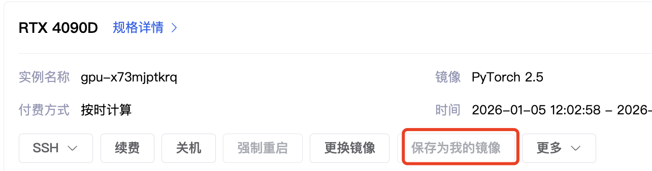 购买好算力后,可以在「我的算力」看到运行实例。