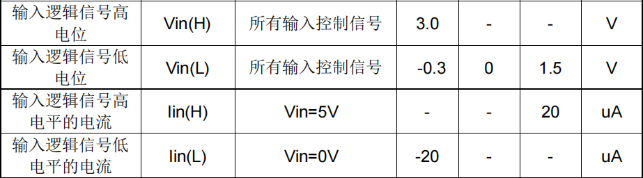 - 输入电流典型值 高电平时 ≤20μA(VIN=5V),低电平时 ≥-20μA(VIN=0V)
