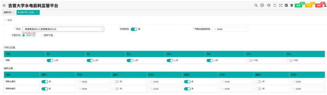 在公共能源管理方面,系统支持对教学楼、实验室、宿舍等不同功能区域设定差异化的能耗定额。例如,可为教室设定合理的照明与插座用电上限,当实际用量超出预设值时自动触发预警,从管理层面约束"无节制用能"行为。同时,结合时控策略,可实现公共区域照明按作息时间自动开关、实验室非工作时段时间断电等功能,从技术层面减少无效能耗,尤其针对"空教室长明灯""假期设备待机"等常见问题提供了自动化解决路径。