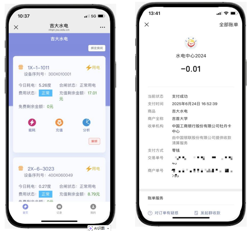 水电收费管理是校园运营中的另一重要环节。高校收费对象多元,包括学生宿舍、教职工公寓、商铺、食堂等,计费模式复杂,且涉及补贴发放、财务对账等多部门协作。该平台实现了宿舍水电的自动抄表与在线收费,支持多方式补贴下发,并接入微信支付等便捷缴费渠道,与银联系统对接,简化了财务对账流程。通过生成缴费金额、补助金额、使用金额、剩余金额等多类报表,系统协助后勤、财务、学工等部门完成数据核对,将传统依赖人工、易出错的对账工作转为系统化、透明化的"主动管理",提升了数据的准确性与一致性。