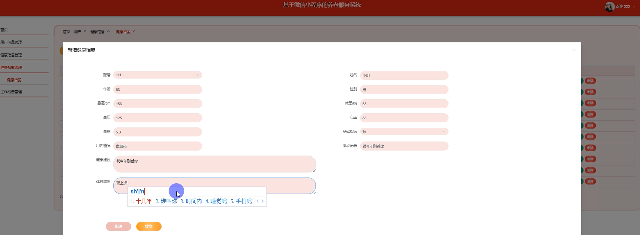 系统操作可行性主要体现在用户友好性与易用性上。对于老年人而言,微信小程序界面简洁,操作直观,无需复杂培训即可完成服务预约、健康数据录入等操作,例如通过语音指令"我要订餐"即可触发服务预约流程,紧急求助按钮固定在首页顶部,支持长按触发,降低了使用门槛。对于家属与服务人员,系统提供Web端管理后台,支持数据可视化展示与批量操作,例如家属可实时查看老人健康状况与服务记录,服务人员可高效接单与管理任务,提升了工作效率。管理员可通过后台系统管理用户信息、服务内容、服务记录等数据,实现全面控制与高效管理。此外,系统支持多角色权限管理,确保数据安全性与操作合规性。综合来看,系统操作流程清晰,用户界面友好,具备高操作可行性。