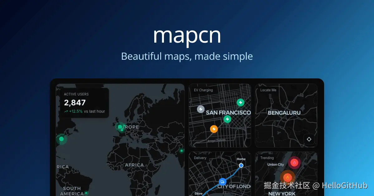 该项目是基于 MapLibre GL 和 Tailwind CSS 构建的交互式地图组件,开箱即用无需配置,能够自动适配浅色和深色模式,支持缩放、指南针、定位、标记、弹框和绘制路线等功能,兼容 shadcn/ui 适合 React 生态的开发者。