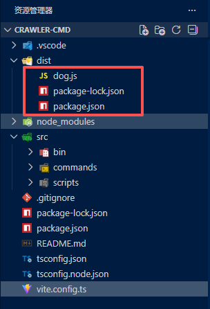 - 需要把 package.json 文件一起打包到 dist 目录中(因为Node CLI是运行时解析(运行时再去找依赖),运行时需要node_modules中的依赖,和web不同web运行时在"浏览器",依赖必须在构建期全部打包),所以需要在编写一个打包脚本,代码如下: