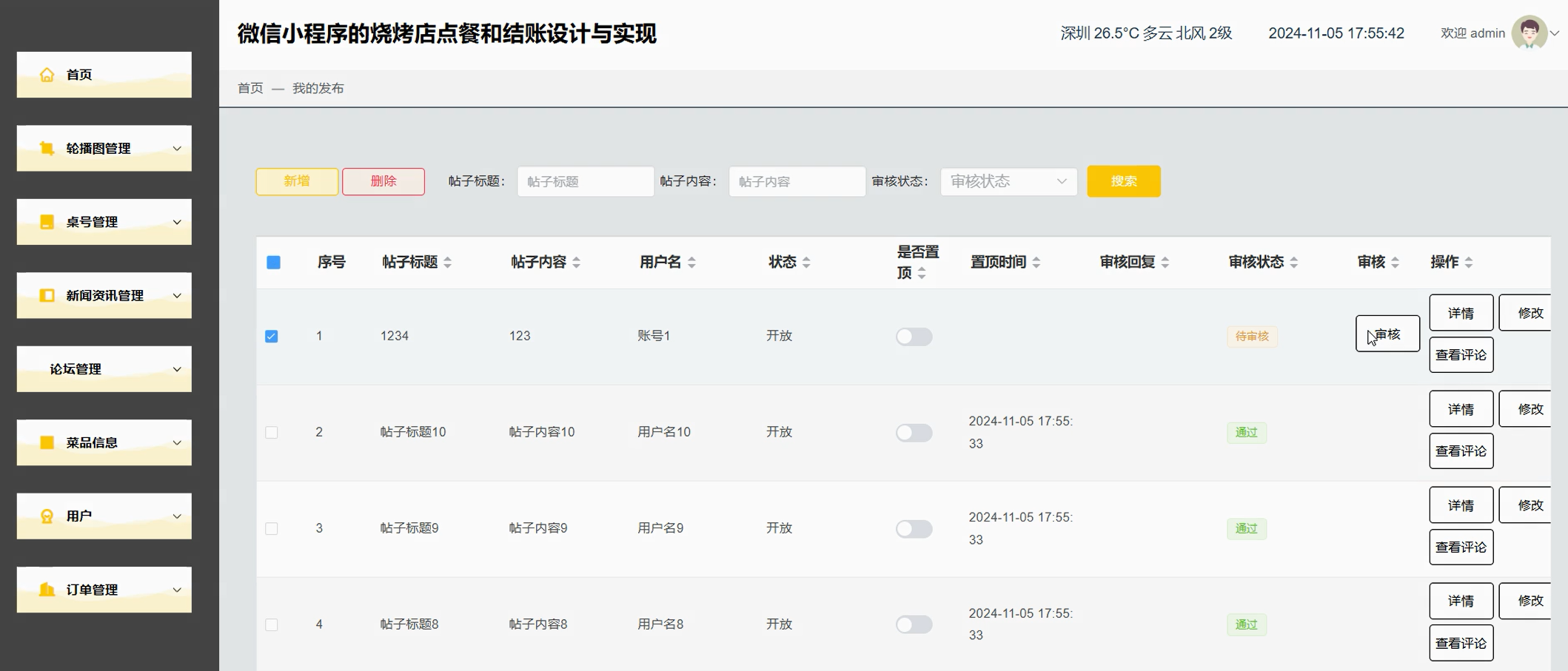 我的发布管理页面
