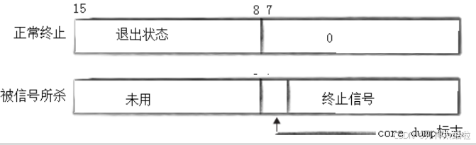 core dump状态剩下那8位是退出码--可以通过退出码看程序有无出错以及出错的原因