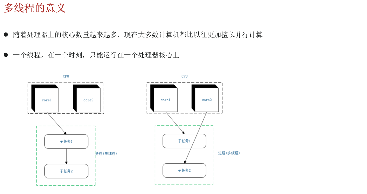 一个线程,在一个时刻,只能运行在一个处理器核心上