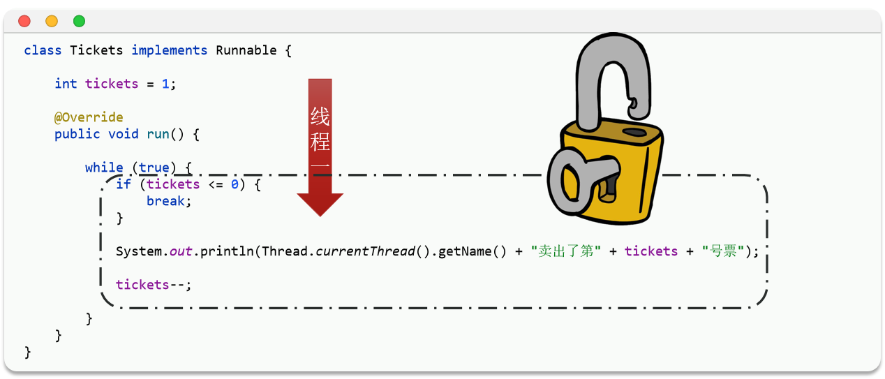 System.out.println(Thread.currentThread().getName()+"卖出了第"+tickets+"号票");