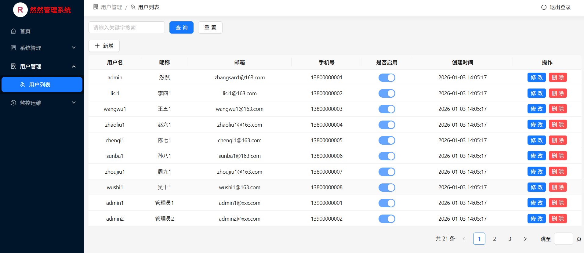 在企业级管理系统开发领域,技术栈的选择往往决定了开发效率、系统稳定性和用户体验。今天给大家推荐一款兼顾灵活性与实用性的管理系统 ------然然管理系统,后端基于 SpringBoot+MyBatisPlus 构建稳定高效的服务层,前端不仅适配了经典的 Vue3+Element-Plus,更全新规划了 Antd4.x 版本的前端实现,给开发者多一份选择,多一份适配空间!