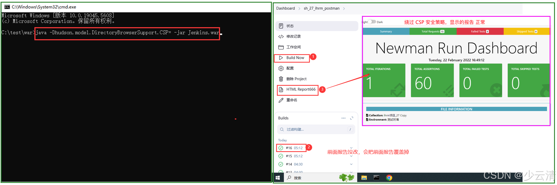 - Jenkins为了避免受到恶意攻击,设置了CSP安全策略。只允许加载 Jenkins服务器上托管的 CSS文件 和 图片文件。