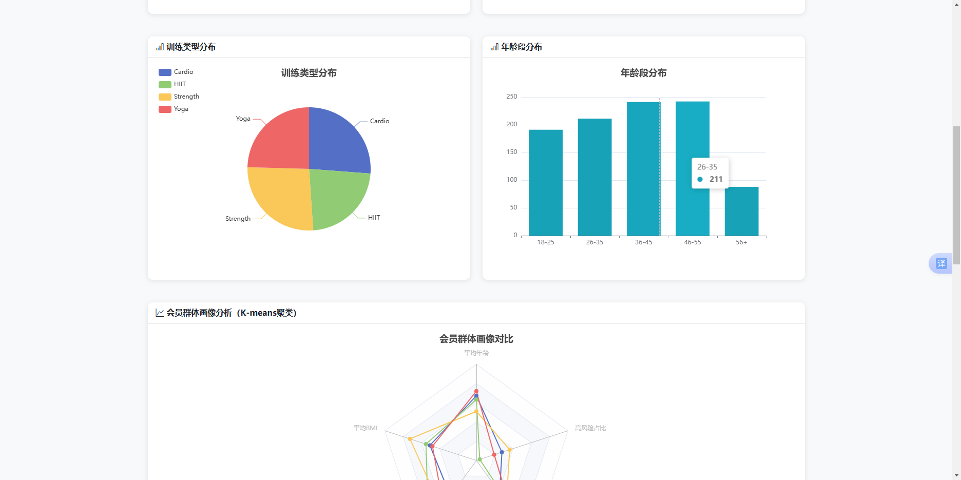基于机器学习的智能健身风险分析系统,整合数据可视化与人工智能算法,为健身房会员健康管理和运营提供决策支持。