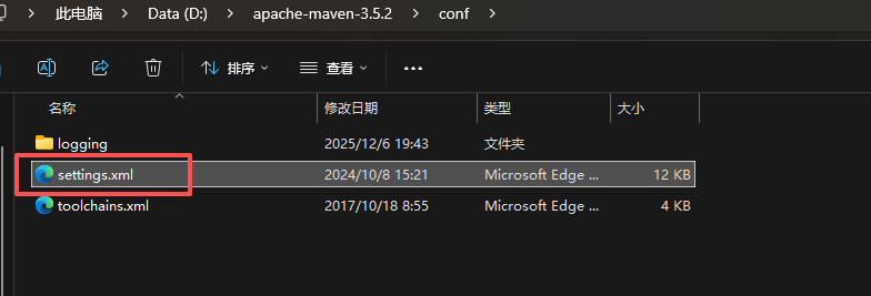 conf:存放了 maven 的一些配置文件,如 setting.xml 文件