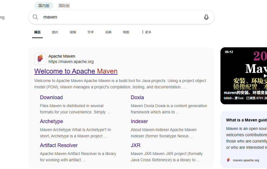 为了使用 Maven 管理工具,我们首先要到官网去下载它的安装软件。通过百度搜索