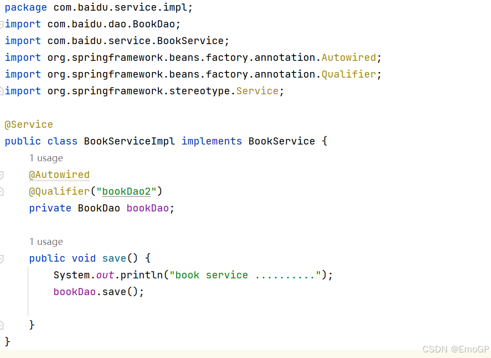 @Qualifier注解无法单独使用,必须配合@Autowired``注解使用