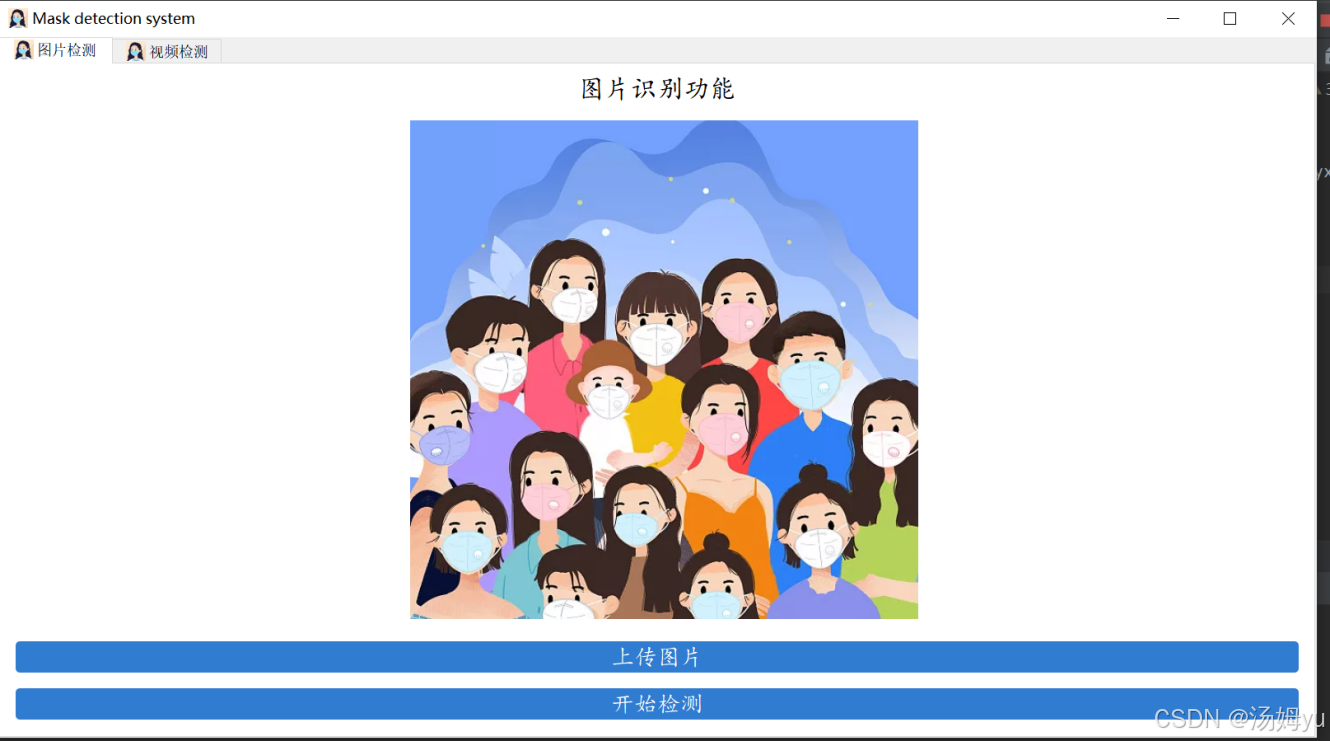 本系统针对人脸图像进行检测,从中提取特征来预测人脸是否佩戴口罩。