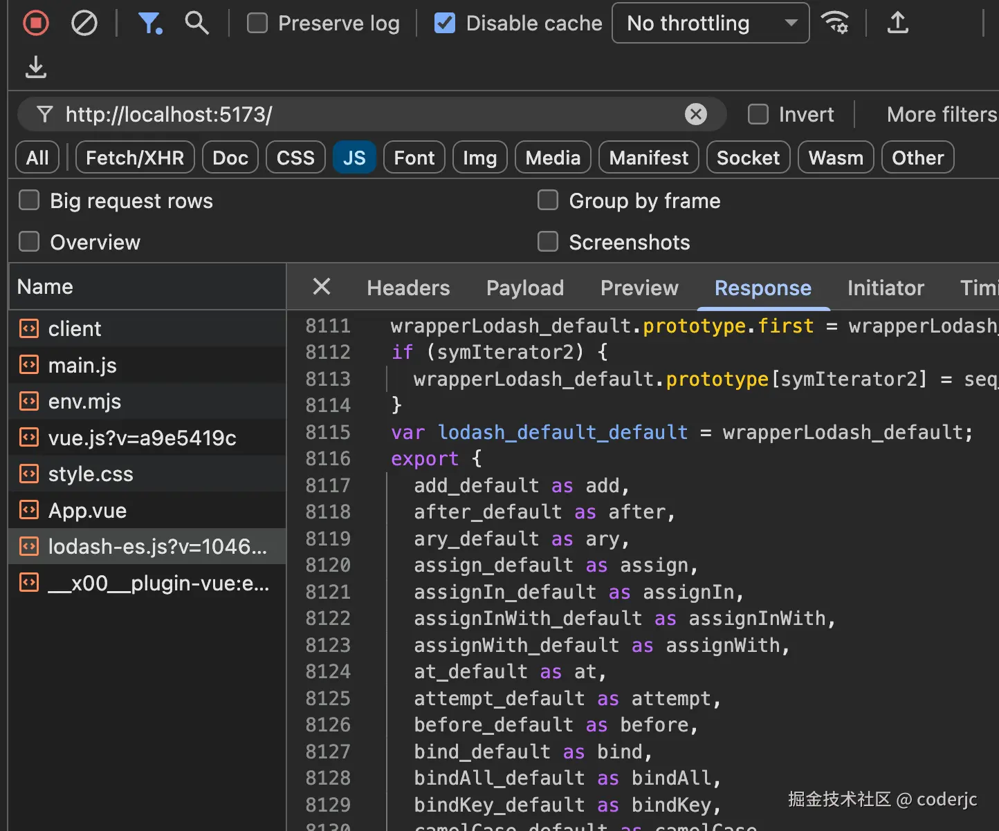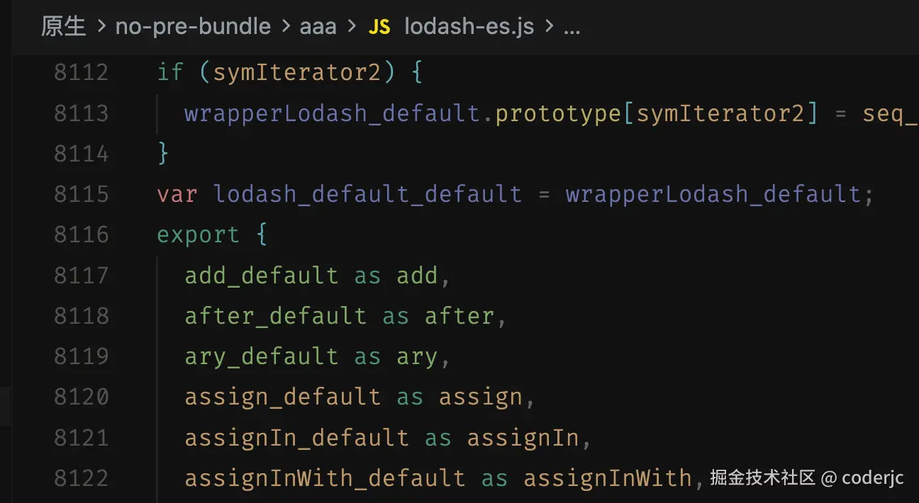 通过查看上文的一个截图,我们大概能看出,其实依赖预构建,就是吧 lodash 这个包的函数都打包到了一个文件里面,然后做了一个统一的导出,所以我们来实现的依赖预构建,也就是要完成这一个目标。